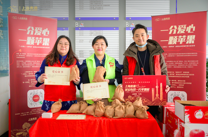 曾经,延安精神让黄土地上结出了丰硕的苹果,今天,延安精神和四方母亲河水让这一株株果树茁壮成熟。跨越1549公里,在上海的初冬,在“一份爱心 一颗苹果”爱满全城幸福传递公益活动中,两万多颗延安苹果在街头巷尾通过爱心传递,也为南京舒明个人护理培训有限公司“幸福三部曲”谱下圆满的乐章。南京舒明个人护理培训有限公司以实际行动点燃城市温度,助力乡村振兴!