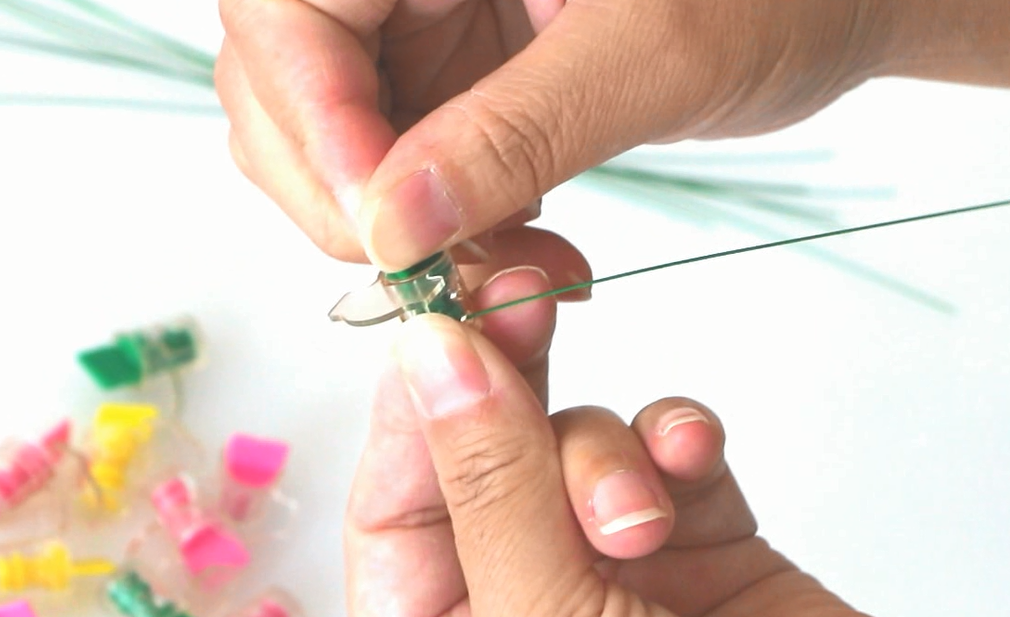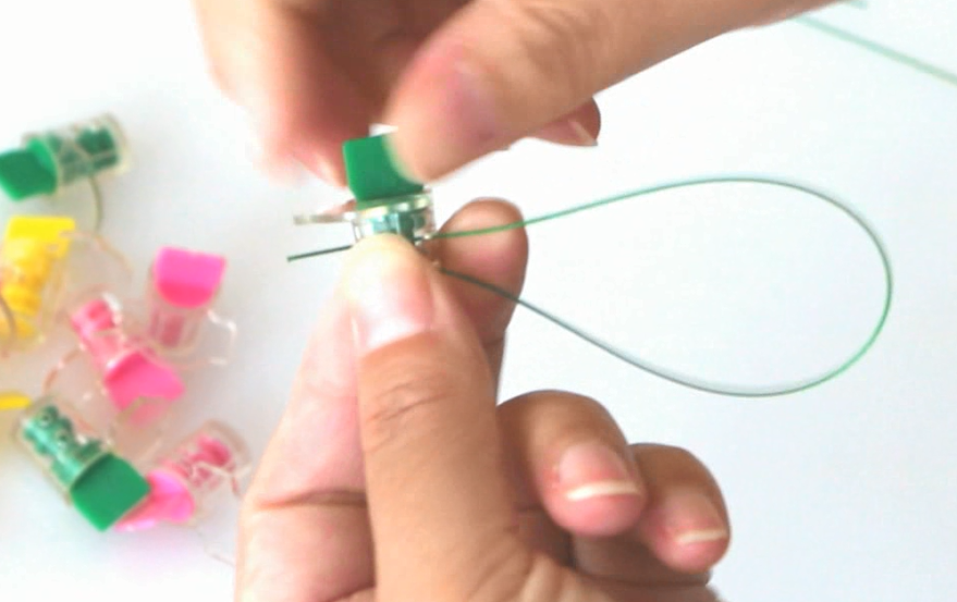 1.仪表铅封上叶片顺时针旋转至外壳的孔和内芯的孔对应好位置,将铅封线由底部外壳的圆孔穿过内芯的圆孔至另外一面,顺时针旋转旋片一圈以上就可锁住固定住。
